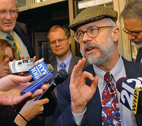 Behe got a dose of that after he finished his testimony in Harrisburg. As he walked down the courthouse steps, journalists and documentary filmmakers surrounded him. One in particular peppered him with tough questions.