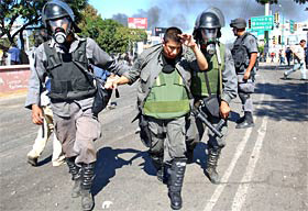 | | A wounded federal police officer was led away from a fierce street battle with leftist protesters in Oaxaca, Mexico, this month. (Luis J. Jimenez/Copley News Service | Oaxaca City, Mexico – Drug traffickers are fighting for control of the north. Radical leftists are fighting for control of the south. And some states, like Guerrero, which houses Acapulco, are in the clutches of both.