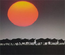 That night, I read that these wildebeests have followed the same oddly shaped clockwise route forever, in rough outline, but because of the varying weather the location of the herds can't be predicted, even by the Masai natives. Each day, when the sun sets, the wildebeests watch the sky, always moving toward the rain and the next day's water. Even though the migration can be enormous, it can move up to thirty-five miles a day in any direction, and tracking it can be extremely difficult.