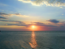 Down the street from the hotel, we sat by the sea wall and listened to the waves lap against the rocks below. And slowly the sun, giant and gold like a shiny coin, dropped through bands of glowing white clouds. Orange and pink streaks lit up the sky before the sun finally disappeared beneath the gulf.