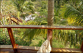 | A guest's-eye view from Blancaneaux Lodge in Mountain Pine Ridge Reserve in Belize. (Photo: Justin Lane / New York Times) | This scene is good enough to fulfill almost any woman's chuck-it-all fantasies: Riding a handsome mahogany mare, I'm following my machete-packing guide, Jason Smith, through a rain forest in Belize. Absurdly oversized ferns gently swipe my sandy boots as we negotiate the green-canopied trail; to our right is an anthill the size of a child's igloo; rising from our left are trumpet trees, great oaks and vertical palms splayed out like a giantess's fan.