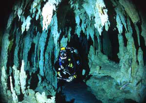 Some cenotes flow out to the ocean. When the fresh water and salt water meet, a blurry halocline layer can be found. This occurrence can occur many miles inland, and is usually found at depths between 30-60 feet.