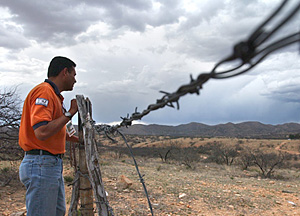 | | Mexican border agent Manuel Lagunes in Sasabe peers into the U.S. Experts say human smugglers will resort to more dangerous routes once the 700-mile border wall is erected. (Don Bartletti/LAT) | At the beginning of every school year, bad news comes from Mexican heartland states such as Zacatecas and Queretaro: Local authorities are closing hundreds of schools because so many families have moved north to the United States.