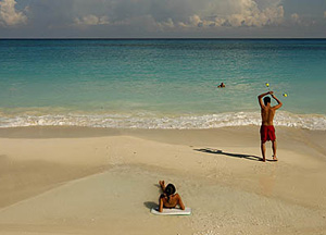 | | Sunbathers enjoy the beach in Cancun, Mexico. The beach was created by pumping 96 million cubic feet of sand from the ocean floor and is evidence of the extreme makeover the resort has gone through since it was savaged by Hurricane Wilma in October 2005. (Dario Lopez-Mills/AP) | Cancun, Mexico - Carl Johnson said his heart missed a beat when he saw the beach outside his Cancun timeshare.