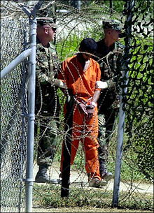 | | A detainee and two US Army MPs at Camp X-Ray in Guantanamo Bay, Cuba, February 2006. A prominent Democratic senator proposed amending a controversial US law on the treatment of terror suspects, calling for the restoration of detainees' basic 'legal rights.' (Peter Muhly/AFP) | The U.S. military called no witnesses, withheld evidence from detainees and usually reached a decision within a day as it determined that hundreds of men detained at Guantanamo Bay were "enemy combatants," according to a new report.