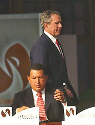 | | Hugo Chávez & George W. Bush, Monterrey México, 2004. (AP) | The Bush administration has refused to talk to foes like Iran, North Korea and Cuba, but it has no such qualms about some of its sternest critics in Latin America, including President Hugo Chavez.