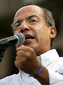| | Mexican President Felipe Calderón | Mexican President Felipe Calderón has been in office less than a month, but already U.S. officials and analysts are buoyed by his first steps to impose the rule of law and use his political skills to broker deals with a divided Congress.