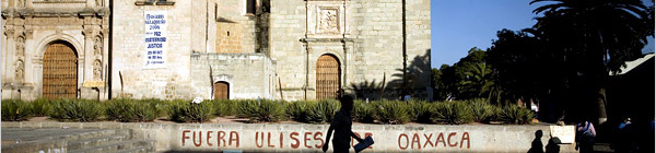 | | Graffiti painted by the Popular Assembly of the Peoples of Oaxaca demands the resignation of Ulises Ruiz, the governor of the state. (Eros Hoagland/NYTimes) |