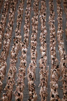 | | Spencer Tunick is known for his photographs that feature large numbers of nude people posed in artistic formations, often situated in urban locations. | Tunick´s Mexico City debut wasn´t without bumps. His arrival was preceded by weighty philosophical battles about public nudity. The prominent Mexican art critic Raquel Tibol declared that Tunick´s photos would be "an antidote to Mexican prudishness," while the Spanish critic Román Gubern sniffed that the photographer´s work is "redundant" and "doesn´t appear artistic."