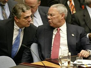 | | Former Secretary of State Colin Powell talks with Ex-CIA Director George Tenet after his presentation to the U.N. Security Council in New York, February 5, 2003. Tenet faced accusations of hypocrisy from former espionage officials on Monday for not speaking out earlier against the White House's push to invade Iraq, which he describes critically in his new memoir. (Mike Segar/Reuters) | On Thursday, May 10, 2007, Lawrence Wilkerson, speaking on National Public Radio, proposed impeaching President George W. Bush and Vice President Dick Cheney.