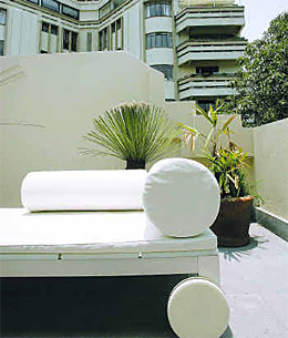 Down the street is another Grupo Habita property, Hotel Básico, which I don't find basic at all. Huge slabs of concrete form grooved rectangles, and the wall-size sliding-glass doors define the open, uncluttered rooms.