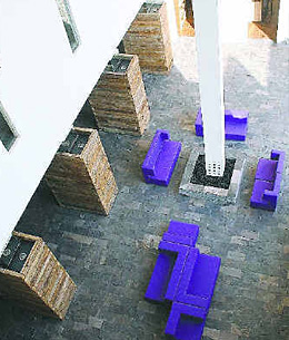 | | La Purificadora's lobby has hip details such as signature purple furniture. (Alberto Romero Saucedo) |