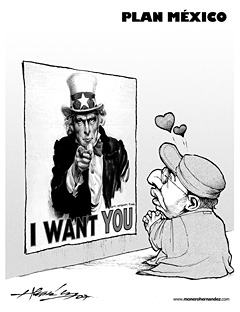 | | (Hernández/La Jornada) | Tijuana, Mexico - More than a third of the Bush administration's proposed counternarcotics aid package for Mexico would be spent on aerial surveillance and the rapid deployment of troops, according to a breakdown of the plan.