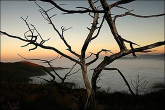 | | Fire-repressing fog moves into an area charred by the recent 80,000-acre Harris Fire, 01 November 2007 southeast of San Diego, California. A boy who accidentally started one of the devastating wildfires that ravaged California last month after playing with matches will not be prosecuted, officials said Tuesday. (AFP/David McNew) | Though it is 2,000 miles away, a small community in Mexico is reeling from last month's firestorms in San Diego County, a disaster that has left one of the town's young people dead and three missing. On Sunday, 20-year-old Alejandro Martínez Flores died from his injuries at UCSD Medical Center, where he had been hospitalized since being rescued by firefighters on Oct. 21, the day the Harris fire began.