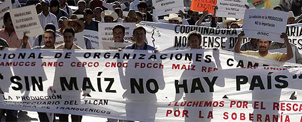 Tired of the 700% increase on the price of tortillas and other corn-based products - as well as increases on other staple such as beans, chicken and meat - as a result of increased importation from the U.S. into Mexico, under NAFTA, farmers and consumers are fighting back.