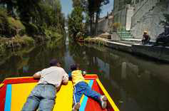 | | A father and son take a cruise through the canals of Xochimilco. The canals are particularly popular on the weekends and during public holidays, when many Mexican families and tourists rent boats complete with musicians and food. | Just outside Mexico City lies an oasis. A place with a maze of canals lined with lush, tropical trees and flowers. A place that flocks of wild birds and the endangered axolotl salamander call home. A place where tourists also flock to soak up the sun and scenery and escape the cramped hustle and bustle of one of the world's biggest cities.