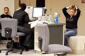 | Ana Reyes-Velasquez, right, and her son Carlos Quiroz, 20, are processed at the Immigration and Customs Enforcement detention center after being arrested in a raid on their home. (Photographed June 26.) (Ken Lambert/The Seattle Times) | Seattle, WA - Dispirited and depressed, Ana Reyes-Velasquez spends her days bouncing between her parents' and brother's homes in Mexico City and a boyfriend's home a few hours away — with no job and no apparent prospects for work.