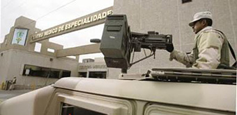 | | A Mexican soldier manned a high-caliber machine gun atop a Humvee parked Tuesday outside the Centro Medico de Especialidades. The commander of the Chihuahua state bureau of investigation was hospitalized there after being shot several times Monday night. (Victor Calzada/El Paso Times) | | | Juarez — The Mexican government has cracked down on drug cartels along the Texas-Mexico border, sending soldiers to Juárez, Nuevo Laredo, Matamoros and Reynosa.