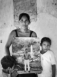 | | Eugenia Cruz Zamora stands with her children, holding a picture of her late husband, Tomás, who was killed on his way home from a protest against the La Parota dam. (Roberto Guerra) | | | On a typically hot day last September, Felipe Flores Hernández sat in the front of a wooden boat, a weathered machete strapped across his back. One of his compadres skillfully guided the boat across the Papagayo River, letting it get pulled the wrong way for a few seconds before pushing his long stick down a few meters to the river bottom so he could change directions. In south-central Guerrero, Mexico, the Papagayo splits the communal lands of Cacahuatepec in two. The people here must cross it to see friends and family, or even to get to that day’s food market—and crossing it is no easy feat.