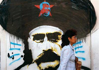 | | A woman passes graffiti in Oaxaca, Mexico, Tuesday, Jan. 8, 2008. More than a year after police evicted protesters who held the city for months, visitors to Oaxaca will find a less crowded city with more local flavor than it had before the 2006 political uprising. (AP/Gregory Bull) | | | Oaxaca, Mexico — Poinsettias carpet the carefully tended gardens of Oaxaca's arch-ringed main plaza, where smoking wreckage and barricades stood just over a year ago. Local bands and marimbas have replaced the sound of explosions, and the smell of gasoline bombs and tear gas have given way to the scent of coffee and mole sauce, two of Oaxaca's specialties.