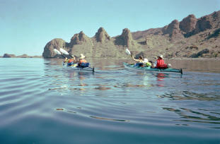 | | We weren't big on guided or organized trips, but sea kayaking around an unfamiliar area as wonderfully remote as Baja's offshore islands was not an activity we would have tried to do alone. | | | A 37-mile kayaking adventure in Mexico's Sea of Cortés focuses on the islands of Danzante and Carmen. Whale-sightings are likely in what Jacques Cousteau called "one of the world's great aquariums."
