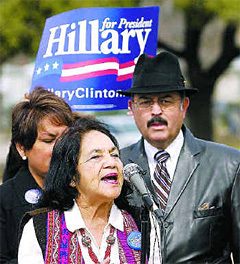 Dolores Huerta, co-founder of United Farm Workers, urged Latinos last week to vote for Sen. Hillary Rodham Clinton.The chant – part reggae, part hip-hop – hit the right chords with many in the Dallas crowd of 500.