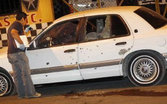 | | A crime-scene technician inspects the car in which police Capt. Saul Peña López was slain Tuesday in Ciudad Juarez. He was the 15th officer slain in the city since the beginning of the year. (Star-Telegram/Tom Pennington) | | | Ciudad Juarez, Mexico - The lights of the bullet-ridden sedan were still shining when the investigators arrived. Police Capt. Saul Peña López had been rushed to the hospital by then, but the blood-soaked pavement suggested he wouldn't be there long.