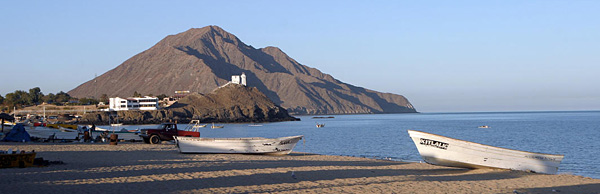 We were alone on the beach. When I introduced myself, Ortega told me how he had left Mazatlan, worked in California for a few years, then found his way to a construction job here. He squinted south at the blue horizon, the knife-sharp outline of a rocky hill with the sun behind it, and raised his arms.