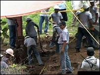 Back at the old army camp in Atoyac, the digging continues. It will go on for some time.