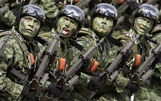 | | Soldiers march during a military parade celebrating Independence Day in Mexico City September 16, 2008. (Daniel Aguilar/Reuters) | | | Morelia, Mexico - Mexico's president called for an end to a culture of "impunity and tolerance" of crime on Wednesday after suspected drug traffickers killed seven people in a grenade attack during independence day celebrations.