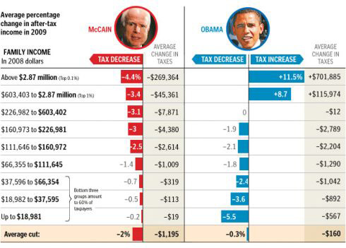 The power of the purse ultimately rests with Congress, and neither candidate would be able to singlehandedly change the course of economic policy upon taking office. Still, when it comes to taxes, Obama and McCain would guide the country in sharply different directions.