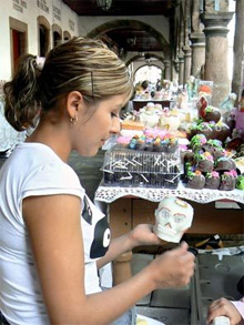 | | Veronica Flores Guzman of Pátzcuaro, Mexico, decorates a skull made of sugar. The skulls sell for about $1.75 and are used to decorate homes during Day of the Dead celebrations. (Carol Pucci/Seattle Times) | | | Nowhere is the Day of the Dead celebrated more enthusiastically than in Pátzcuaro, a 16th-century town in Mexico.