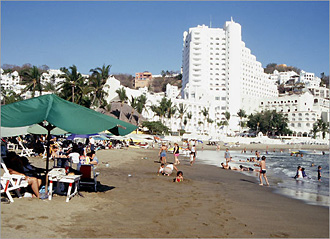 | | Decades after '10' was filmed on La Audiencia Beach, Manzanillo has many more tourists and many more accommodations. (Claudia R. Capos/Boston Globe) | | | As our bellman Rafael drove us through the cobbled streets and past the splashing fountains of Las Hadas, an exclusive Moorish-style resort, he confided the details of a memorable visit several years ago.