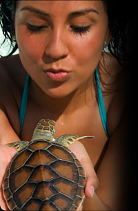 | | In Mexico, since 1990, marine turtles are protected by the Federal Law. Xcaret, joining efforts with government institutions, protects the two species of turtles that nest in Quintana Roo`s beaches: the Green Turtle (Chelonia mydas) and the Loggerhead Turtle (Caretta caretta). For more info visit the website at Xcaret.com |  | Cancun - Mexico's biggest private ecological park is expanding its already comprehensive sea turtle conservation program and will hatch a record number of them this year.