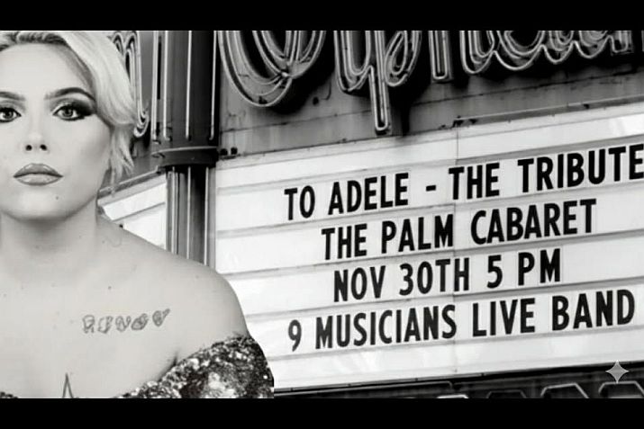 Don’t miss this phenomenal Tribute to Adele with a spectacular 9 piece band on Sunday, November 30th at 5 pm at The Palm Cabaret.
