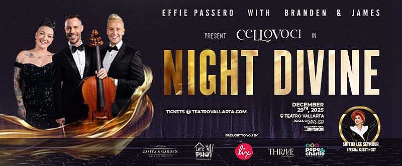 CelloVoci’s Night Divine will light up Teatro Vallarta’s 900-seat stage in a grand celebration sponsored by several leading local businesses, including Casita & Garden, Thrive IV & MedSpa, Let’s Pho Vietnamese Cuisine, Lix Ice Cream, and Pepe & Charlie Private Chefs. The evening is expected to draw Puerto Vallarta’s most prominent community figures and arts supporters.
