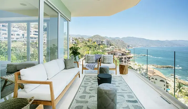 The completed residences showcase the value of intentional design. Expansive terraces overlook Banderas Bay and feature commercial-grade outdoor furnishings engineered for coastal conditions. More than five years later, the outdoor seating continues to look nearly new, underscoring the importance of performance-grade materials.