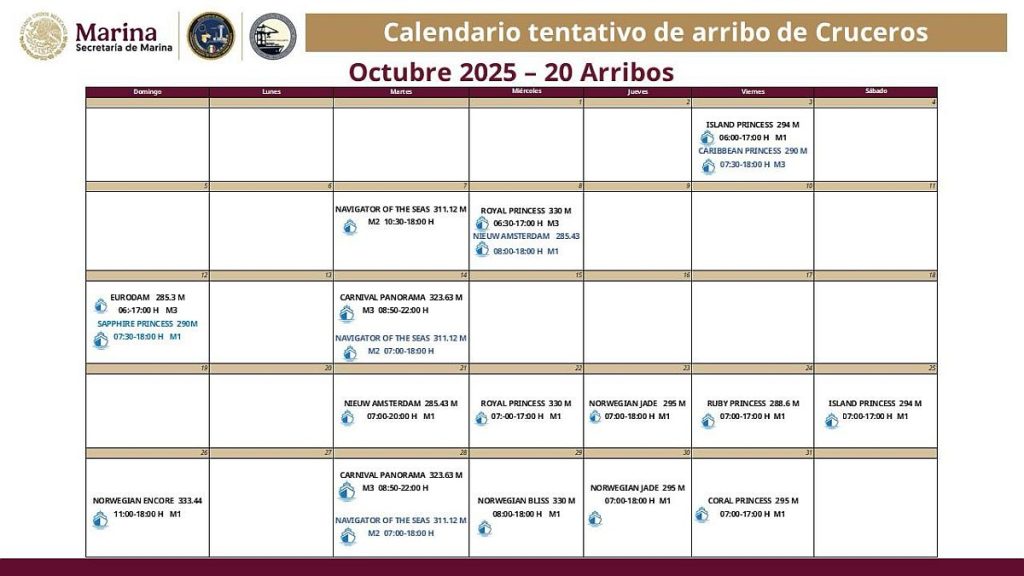 Puerto Vallarta, Mexico – Puerto Vallarta is officially entering its high season for international cruise tourism this October, with 20 scheduled ship arrivals expected to bring a major boost to the city’s economy. Five of these arrivals will be double dockings, when two cruise ships call at port on the same day, creating busy and exciting days for the destination.