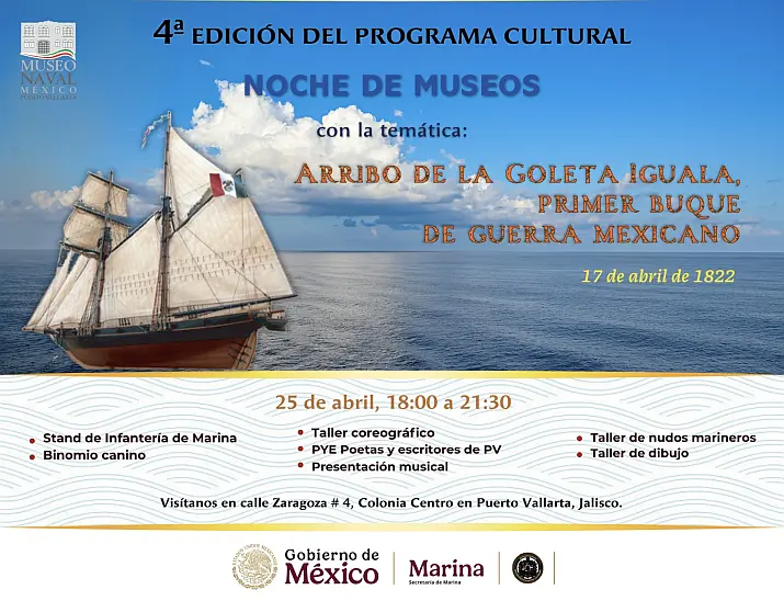 Puerto Vallarta families and visitors are invited to step into history during the 4th edition of Museum Night at the Naval History Museum of Puerto Vallarta on April 25. The evening will commemorate the arrival of the schooner Iguala, recognized as the first warship of Mexico’s Navy.