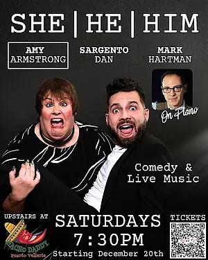 The energy shifts toward comedy and vocal prowess on Saturday evening with the year’s first performance of She. He. Him! This new show features the powerhouse vocals of Amy Armstrong and the comedic flair of Sargento Dan, all under the guidance of award-winning music director Mark Hartman. The show bridges generational gaps through a mix of Broadway standards and pop hits, prioritizing authentic showmanship and sharp wit.