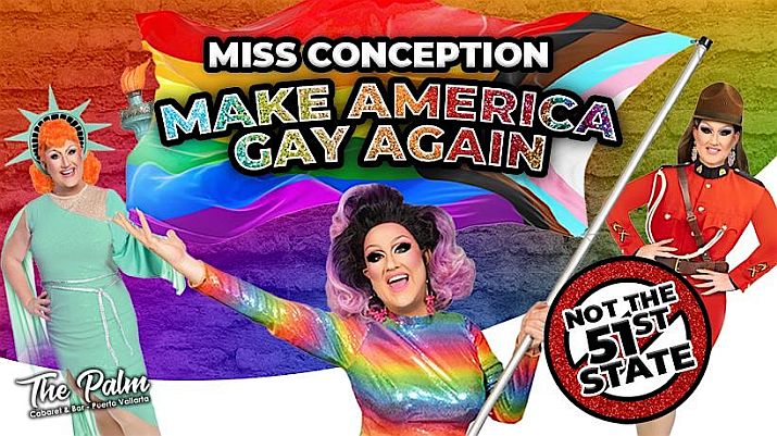 Miss Conception: Make America Gay Again. The world is in chaos, and its rainbow sparkle has started to fade. But fear not! One fearless, fabulous Canadian queen is heading South – heels first – to restore the Pride flag and Celebrate the Gay Icons. From Lady Gaga, Chappell Roan, Cher, Madonna, Bette Midler, Elton John, Dolly Parton, Liza Minnelli, Freddie Mercury, Carol Channing and a friend of Dorothy. 20 Dazzling costume reveals, spot-on celebrity impersonations, all-live singing, and reimagined pop anthems will have audiences roaring with laughter and singing along.(Mondays at 9 pm & Thursdays at 7 pm)
