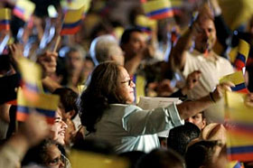 | | Colombian Americans cheer and wave Colombian flags during a town-hall style meeting with Colombian President Alvaro Uribe in Elizabeth, N.J. New Jersey is home to the third-largest Colombian population in the U.S. (Photo: Mike Derer) | Phoenix - Within my circle of friends, business acquaintances, advocacy partners, other acquaintances and the hundreds of shoppers I have come to know at the Mesa Food City where I have shop nearly daily for the last two years, the talk is not if, but when.