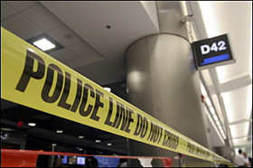 | | Police tape is seen in front of Gate D42, the gate where US air marshals shot and killed a passenger - who claimed to have a bomb - on the skyway attached to American Airlines flight 924 in Miami, Florida. Officials said no explosives were found and witness accounts indicate he may have been mentally unstable.(AFP/Richard Patterson) | It is a long-established principle in American law that our cherished rights of freedom of speech and expression do not include the right to scream "Fire!" in a crowded theater when there isn't any such danger. Serious threats to the public welfare (what might happen in a panicked theater evacuation) require corresponding limits on our freedoms to protect public safety.
