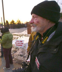He tried to join the military, then the Border Patrol, but was told he was too old. He pitched stories to mainstream media outlets but found no takers. So he washed dishes for a while and acted in one of the local Old West shows as a bumbling gunslinger named Shame. He eventually found a job at the Tombstone Tumbleweed. Within six months he bought the paper and quickly transformed it into a mouthpiece for his anti-immigrant views. In October of 2002, Simcox issued "a public call to arms."