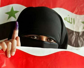| | Ayisha, an Iraqi Sunni woman, shows her ink-stained finger after casting her vote in Amman December 15, 2005. Only scattered insurgent attacks marred Iraq's election on Thursday as disgruntled Sunni Arabs joined the vote, determined to have more say in government. (Reuters/Ali Jarekji) | There is an election taking place in Iraq on Friday. According to those who still maintain some kind of hope that the wretched situation over there can be salvaged at the ballot box, this election will be a turning point. "If the result is seen to be fair and the government elected for the next four years is accepted as broadly representative of the interests of most Iraqis," writes Liz Sly in the Chicago Tribune, "there is a real chance that the insurgent violence and the sectarian rivalries that are pushing the country close to civil war will abate."