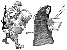 | Mexico's view of the looting in Iraq. | In the faculty dining room at the California State University where I teach, a Mexican-American woman places thin slices of turkey on bread. Stress lines radiate down from her high cheekbones. One of her sons left last week for Iraq. "I pray every day," she says, smearing mayonnaise on bread.