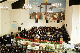 | | The coffin with the body of Stanley Tookie Williams rests in the middle of the altar during his funeral services in a church in Los Angeles, CA. Two thousand people joined a memorial service for Williams, co-founder of the notorious Crips street gang whose execution on December 13 became a national cause celebre. (AFP/Hector Mata) | Washington - As the United States' use of the death penalty continues to decline and support for the alternative sentence of life without parole increases, the Death Penalty Information Center's (DPIC) 2005 Year End Report projects that fewer than 100 death sentences will be handed down in the United States during 2005. Based on data from three-quarters of the year, DPIC projects that 96 people will be sentenced to death this year, down over 60 percent since the late 1990s and the fewest number of death sentences in one year since capital punishment was reinstated in 1976.