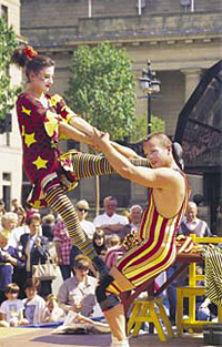 He realizes his sixth-grade education limits what he could earn at most companies, but on the streets, he need only work harder and work longer to make ends meet. These days, he says, he works seven days a week and can usually earn at least US$20 in an eight-hour day. “There is no health insurance, no doctor, no Christmas bonus,” Laurend said as he took a short break from juggling atop a folding ladder.