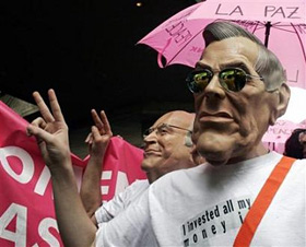 | | Activists wear masks depicting Defense Secretary Donald Rumsfeld (R) and Vice President Dick Cheney during a protest against the Iraq war at the venue of the annual World Social Forum in Caracas, January 26, 2006. (Francesco Spotorno/Reuters) | The US Defense Secretary pushed for new powers to better deal with emergencies.