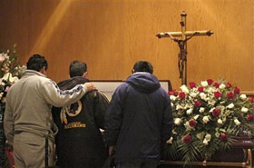 | | An unidentified man puts his hand on the shoulder of Luis Martinez, 20, on Monday, Jan. 2, 2006 in Tijuana, Mexico during the wake for Martinez' brother, Guillermo Martinez Rodriguez, who was shot by a U.S. Border Patrol agent Dec. 30 near the international border wall separating Tijuana and San Diego. (AP/David Maung) | The fatal shooting of an 18-year-old immigrant by a US Border Patrol agent last week has fueled popular anger in Mexico over an increasingly repressive and xenophobic immigration policy that is being crafted in Washington.